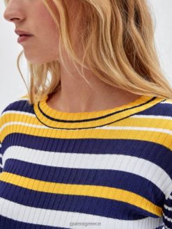 GUESS για άνδρες και γυναίκες αυθεντικό οικολογικό πουλόβερ με ραβδώσεις μεσαιωνικό μπλε ενδύματα J46DJ1361