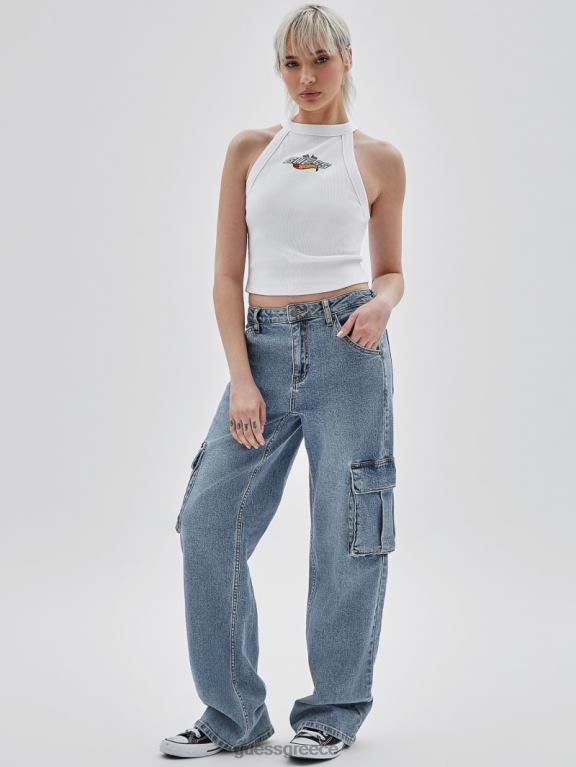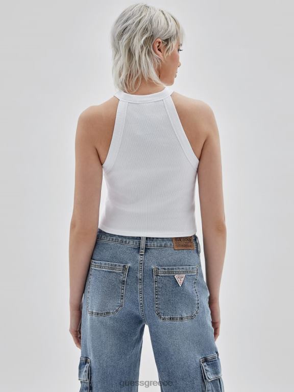 GUESS για άνδρες και γυναίκες γνήσια x δεξαμενή με λογότυπο ζεστών τροχών καθαρό λευκό ενδύματα J46DJ1337