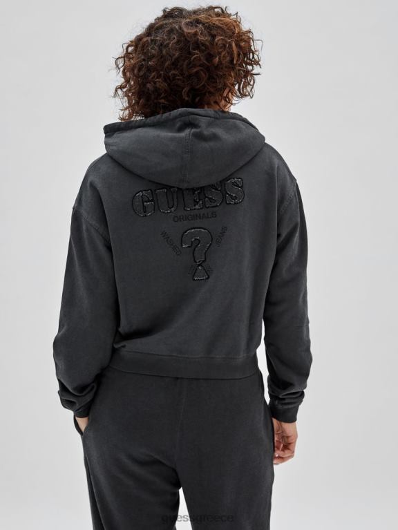 GUESS για άνδρες και γυναίκες γνήσιο λογότυπο με κουκούλα με φερμουάρ jet black multi ενδύματα J46DJ2474