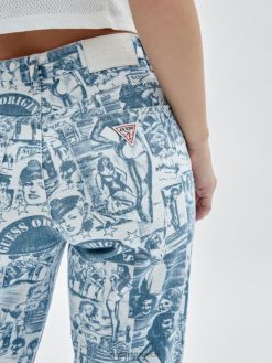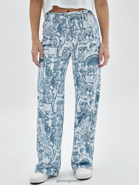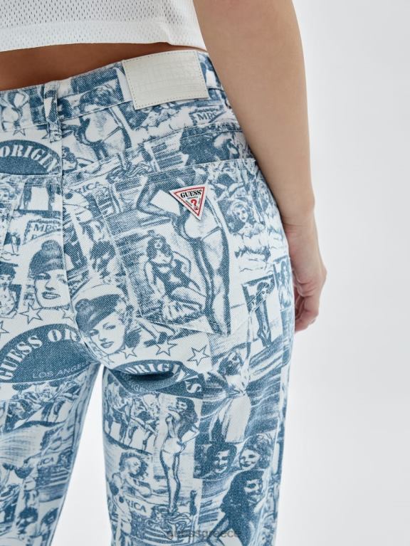 GUESS για άνδρες και γυναίκες πρωτότυπα vintage τζιν με φαρδιά στάμπα καθαρό λευκό multi ενδύματα J46DJ174