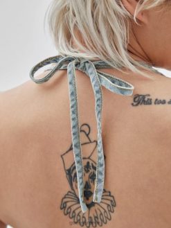 - λαιμόκοψη με λουράκια που δένουν μόνοι τους