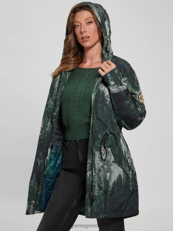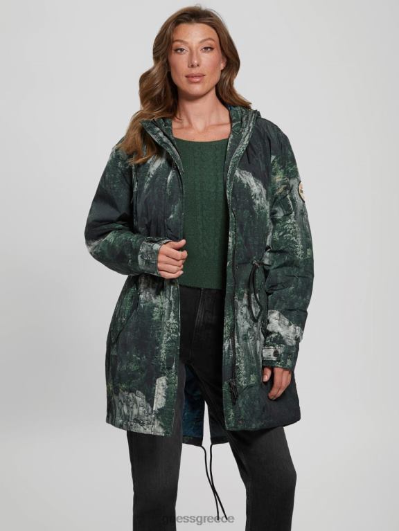 GUESS γυναίκες άσος άνορακ Εκτύπωση δασικών βράχων ενδύματα J46DJ1962