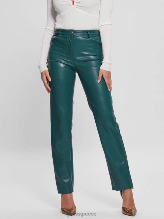GUESS γυναίκες ίσιο παντελόνι kelly από συνθετικό δέρμα βασιλικό γαλαζοπράσινο πολυ ενδύματα J46DJ2209