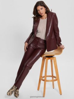 GUESS γυναίκες ίσιο παντελόνι kelly από συνθετικό δέρμα mystic wine multi ενδύματα J46DJ2222