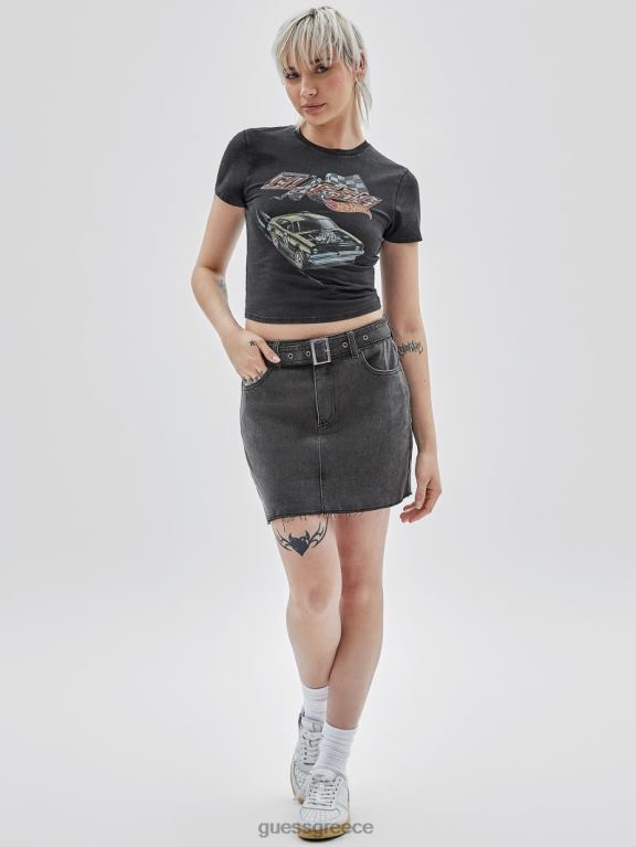 GUESS γυναίκες αυθεντικά x ζεστές ρόδες vintage μπλουζάκι μωρού jet black multi ενδύματα J46DJ1247