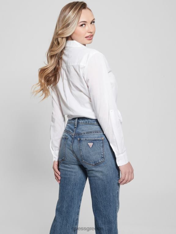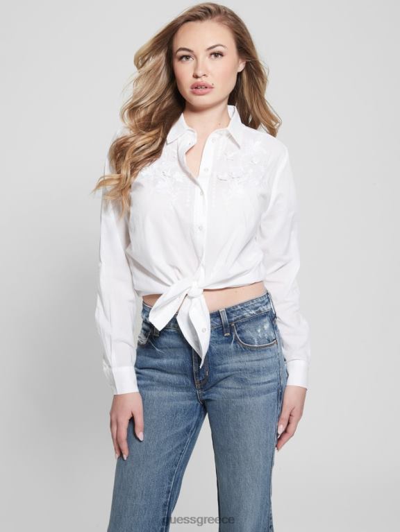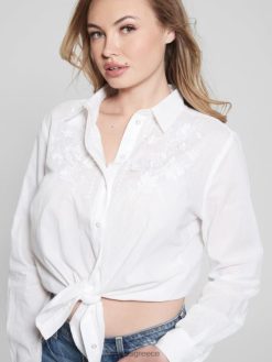 GUESS γυναίκες βαμβακερό πουκάμισο με κέντημα νάντια καθαρό λευκό ενδύματα J46DJ1165