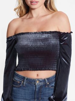GUESS γυναίκες βελούδινο τοπ από τον ώμο σκανδιναβική θάλασσα πολυ ενδύματα J46DJ1500