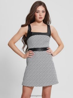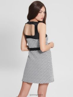 GUESS γυναίκες γεωμετρικό φόρεμα adele geo logo jqd λευκό/μαύρο ενδύματα J46DJ684