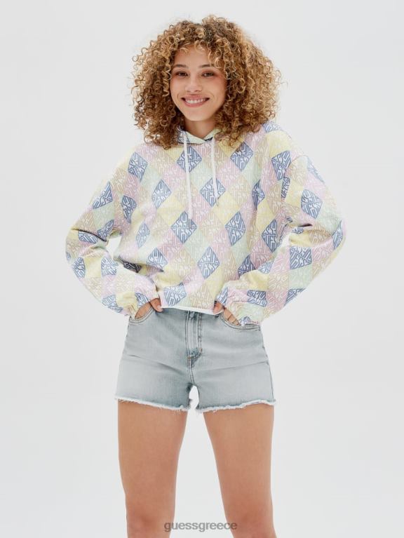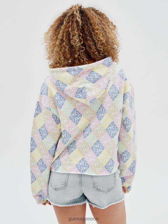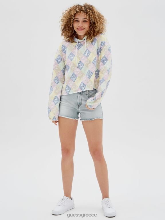 GUESS γυναίκες γνήσια κουκούλα με λογότυπο καθαρό λευκό multi ενδύματα J46DJ1299