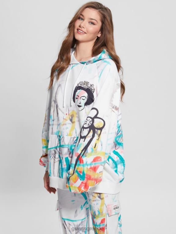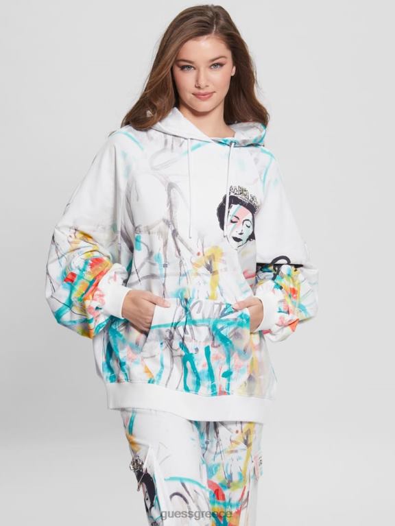 GUESS γυναίκες γραφικό κουκούλα βασίλισσας εκτύπωση τέχνης του δρόμου ενδύματα J46DJ1901