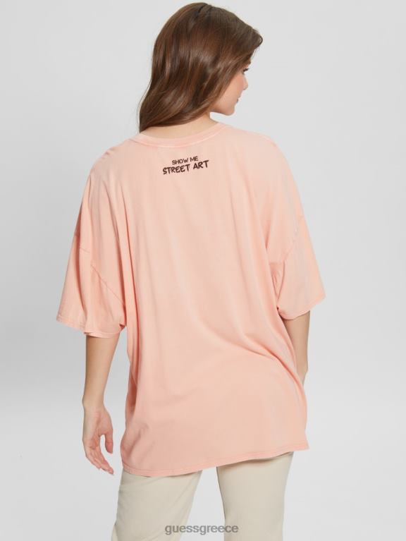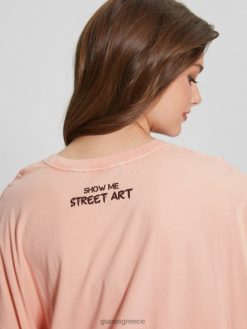 GUESS γυναίκες γραφικό μπλουζάκι μεγάλου μεγέθους λαγουδάκι γεια ροδάκινο πολυ ενδύματα J46DJ1215