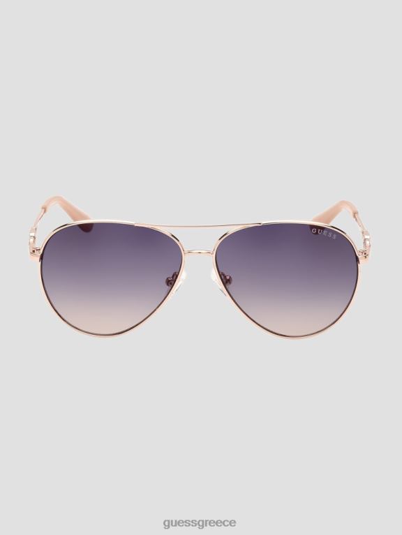 GUESS γυναίκες γυαλιά ηλίου αεροπλάνου από μέταλλο τετράγωνο g link γυαλιστερό ροζ χρυσό/ντεγκραντέ αξεσουάρ J46DJ3656