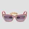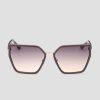 - ένα ζευγάρι πλαστικά γυαλιά ηλίου με γεωμετρικό σχήμα, μεταλλικές λεπτομέρειες στο πλάι και φακούς ombre.
