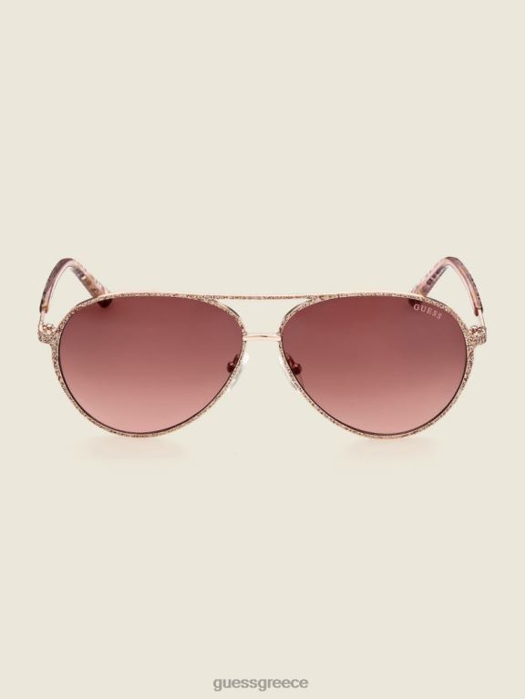 GUESS γυναίκες γυαλιά ηλίου aviator με animal print ροζόλντ αξεσουάρ J46DJ3687