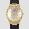 GUESS γυναίκες δερμάτινο αναλογικό ρολόι σε χρυσό και μαύρο αξεσουάρ J46DJ3599