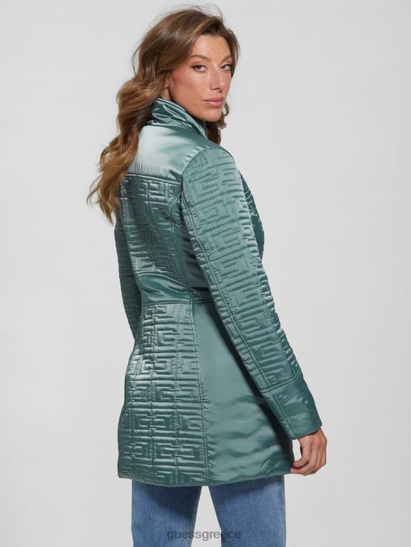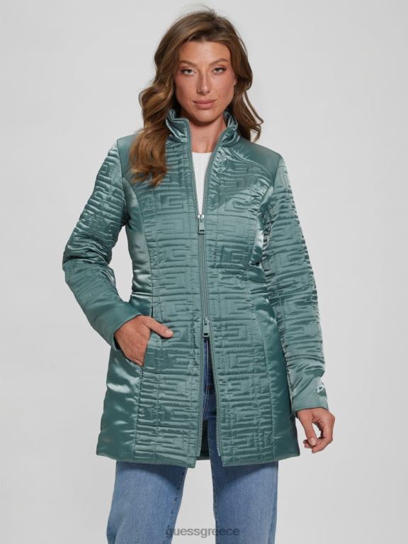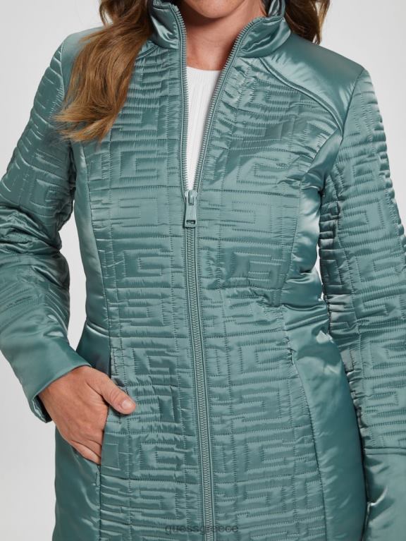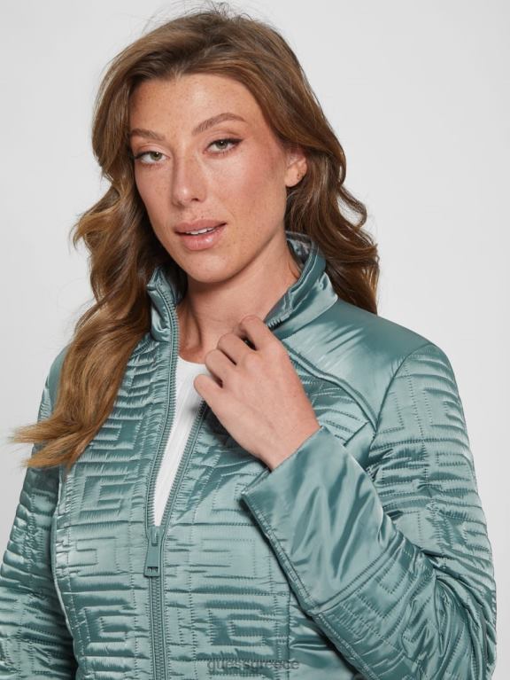 GUESS γυναίκες θαλάσσιο καπιτονέ τζάκετ με παραγάδι σκονισμένο γαλαζοπράσινο ενδύματα J46DJ1963