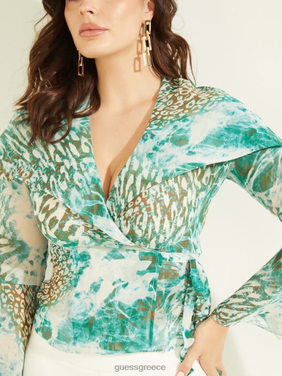 GUESS γυναίκες ιτιά μπλούζα υποβρύχια γαλαζοπράσινη αγάπη ενδύματα J46DJ1525