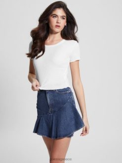 GUESS γυναίκες καπνιστό μπλουζάκι μωρού καθαρό λευκό ενδύματα J46DJ1169