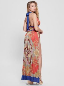 GUESS γυναίκες καπουτσίν μάξι φόρεμα μπαρόκ ροζ ενδύματα J46DJ337