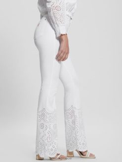 GUESS γυναίκες κεντημένο φαρδύ παντελόνι καθαρό λευκό ενδύματα J46DJ98