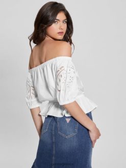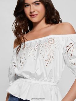 GUESS γυναίκες κεντητό λάζο τοπ καθαρό λευκό ενδύματα J46DJ921