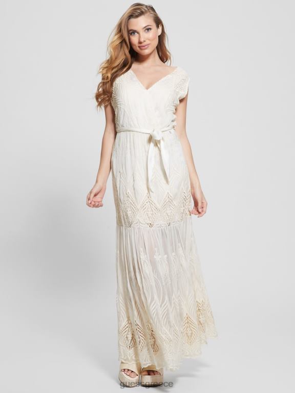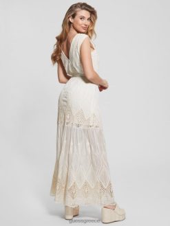 GUESS γυναίκες κεντητό μακρύ φόρεμα pam λευκή κρέμα ενδύματα J46DJ572