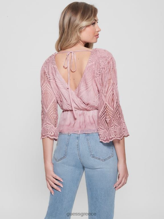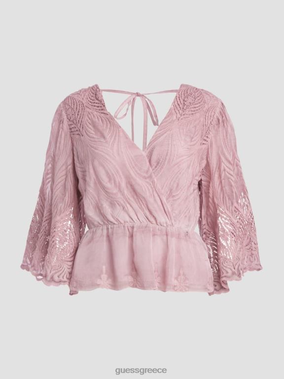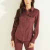 GUESS γυναίκες οικολογικό σατέν πουκάμισο Linda λιλά καπνός ενδύματα J46DJ1091
