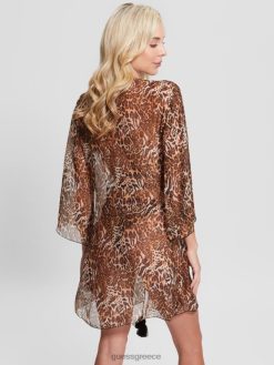 GUESS γυναίκες κιμονό με μείγμα μεταξιού εμβληματικός συνδυασμός λεοπάρ ενδύματα J46DJ2535