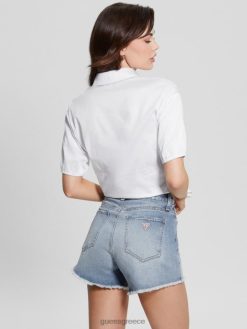 GUESS γυναίκες κοντομάνικη μπλούζα με φιόγκο Ιουνίου καθαρό λευκό ενδύματα J46DJ1178
