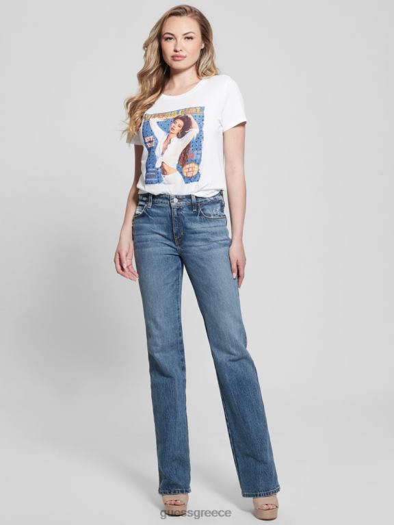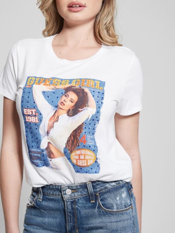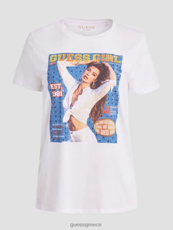 GUESS γυναίκες κορίτσι εύκολο γραφικό μπλουζάκι καθαρό λευκό ενδύματα J46DJ1102