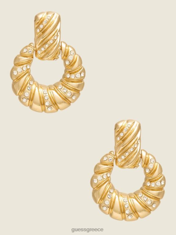 - κάντε μια δήλωση με αυτά τα σκουλαρίκια σε χρυσό τόνο, σχεδιασμένα σε σιλουέτα ρόπλου πόρτας, με κρουασάν υφή με πινελιές από στρας