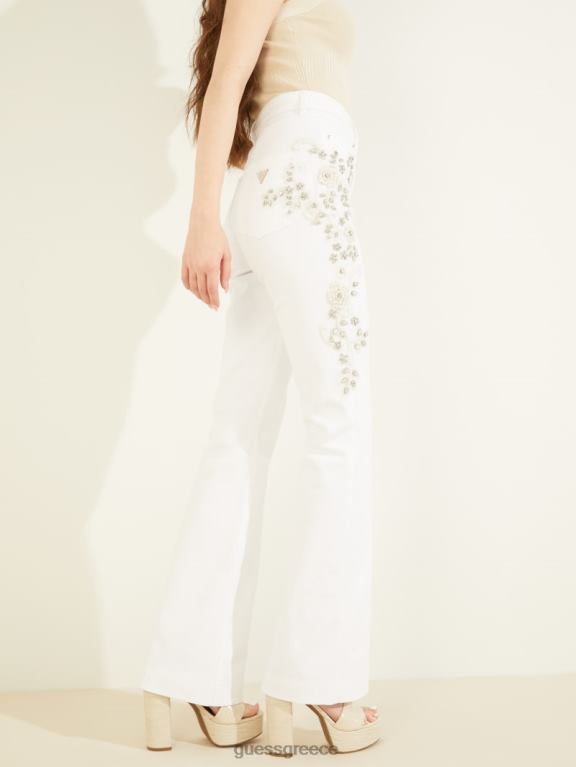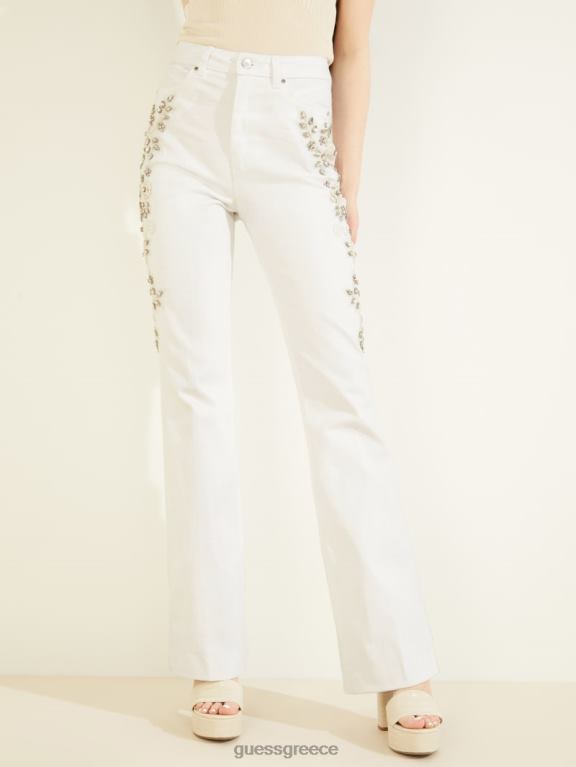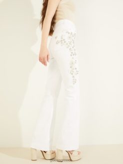 GUESS γυναίκες λαμπερά τζιν με στολίδια της δεκαετίας του ’70 χρυσό λευκό ενδύματα J46DJ148