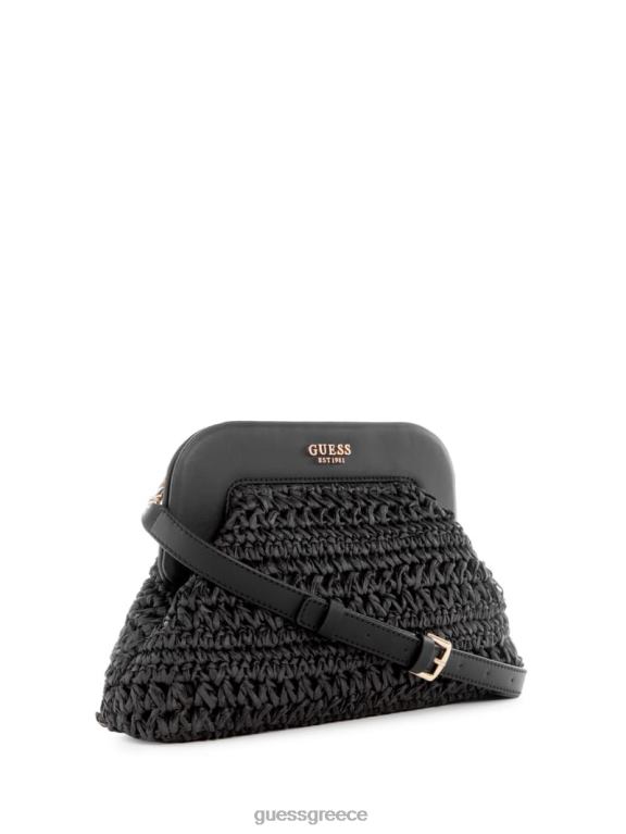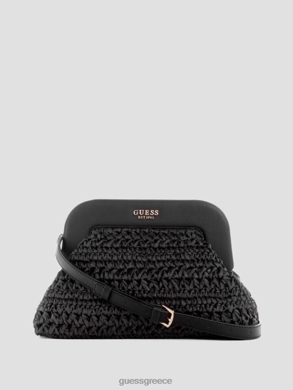 GUESS γυναίκες λιγουρία βελονάκι από άχυρο σκελετό συμπλέκτη μαύρο φλοράλ στάμπα σακούλες J46DJ2937