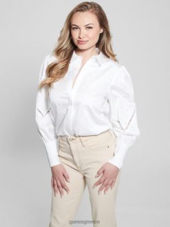 GUESS γυναίκες Λόρι κεντημένη υφαντή μπλούζα καθαρό λευκό ενδύματα J46DJ1055