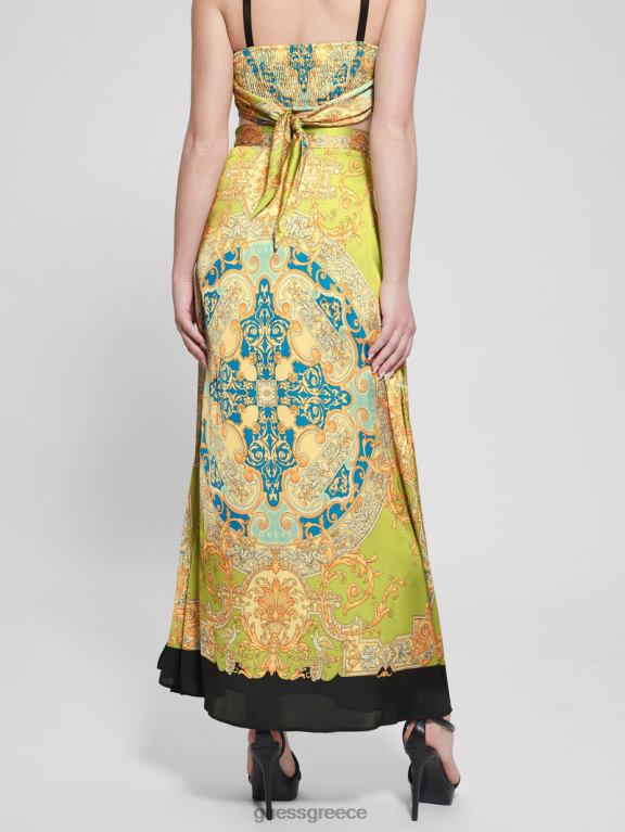 GUESS γυναίκες μάξι φούστα αθηνά σατέν μπαρόκ ασβέστη ενδύματα J46DJ2018