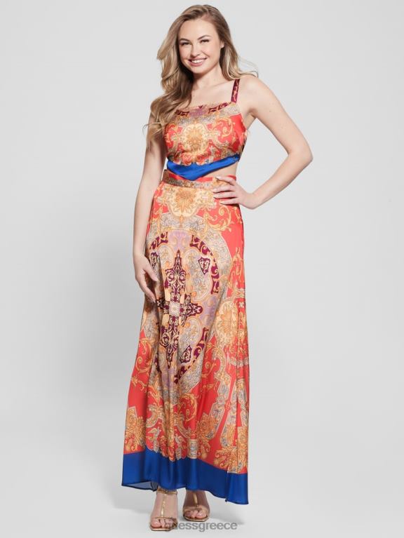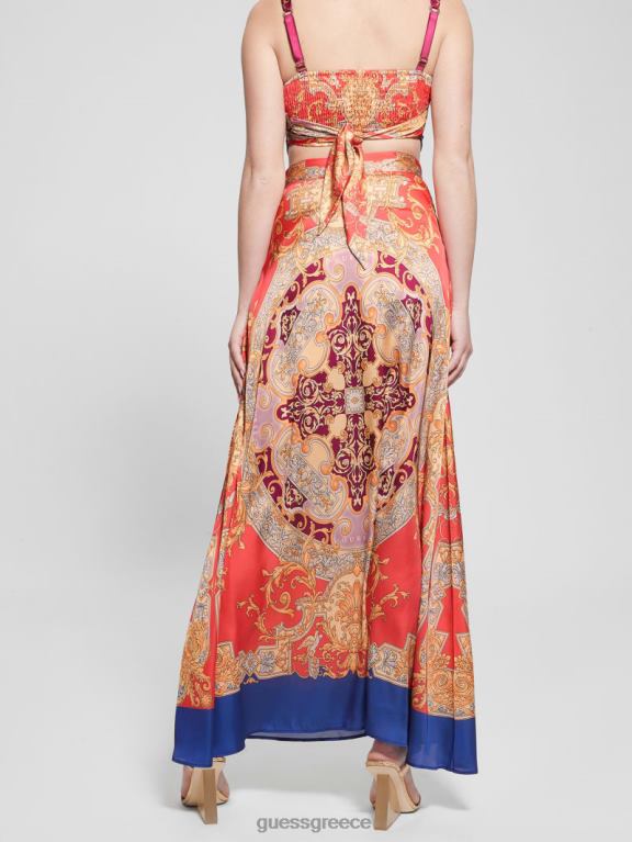 GUESS γυναίκες μάξι φούστα αθηνά σατέν μπαρόκ ροζ ενδύματα J46DJ2017