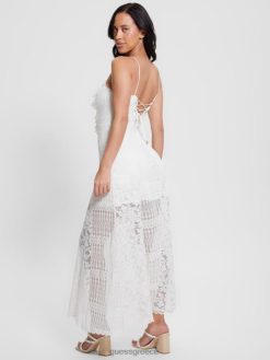 GUESS γυναίκες μάξι φόρεμα από δαντέλα Kellie λευκή κρέμα ενδύματα J46DJ303