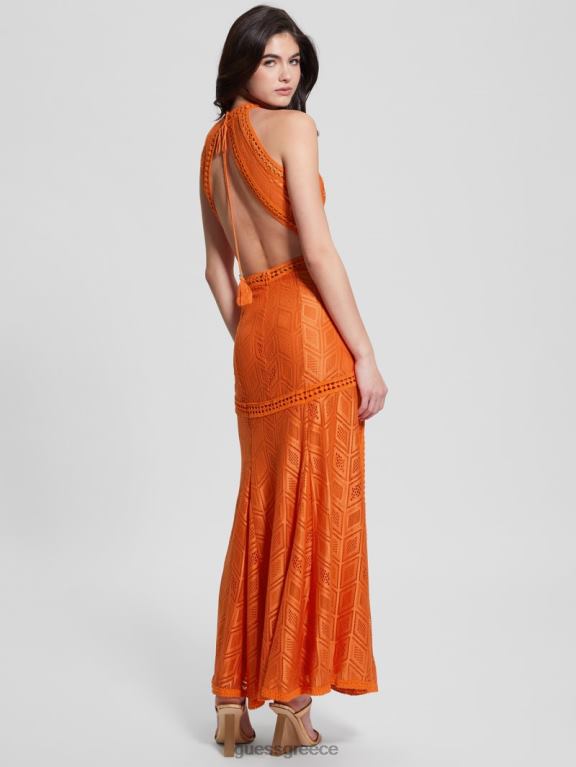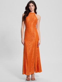 GUESS γυναίκες μάξι φόρεμα με δαντέλα ηλιοβασίλεμα πορτοκαλί λάσπη ενδύματα J46DJ380