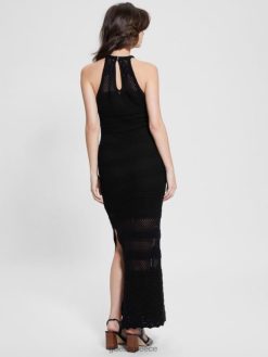 GUESS γυναίκες μάξι φόρεμα με κροσέ amelie μαύρος ενδύματα J46DJ346