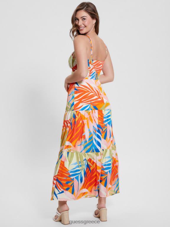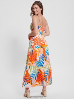 GUESS γυναίκες μάξι φόρεμα με τροπικό εμπριμέ εκτύπωση χαβάνας ενδύματα J46DJ430