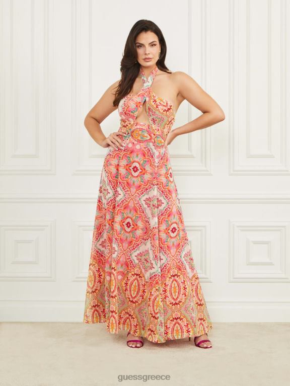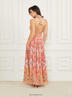 GUESS γυναίκες μάξι φόρεμα halter normani Εκτύπωση πλακιδίων talitha ενδύματα J46DJ504