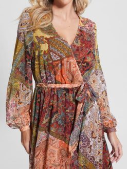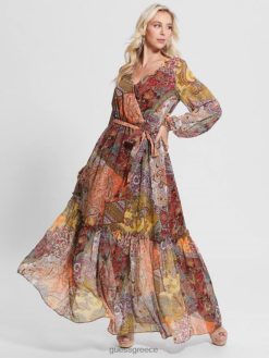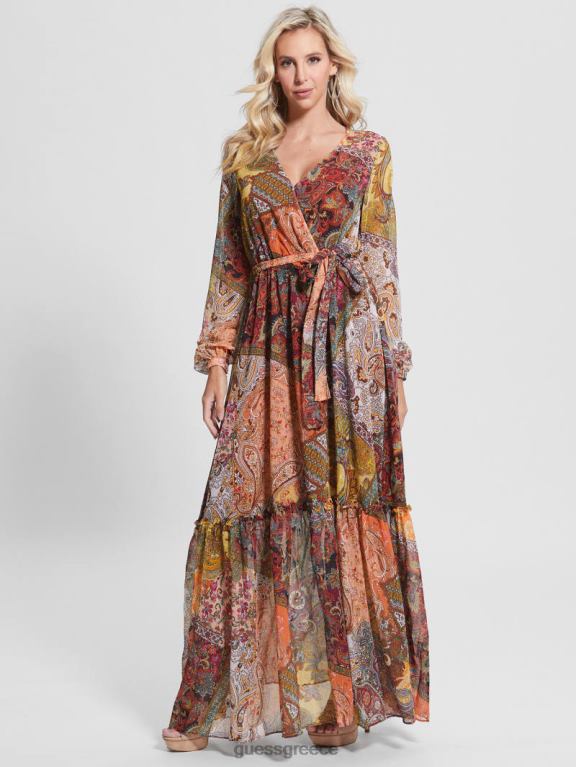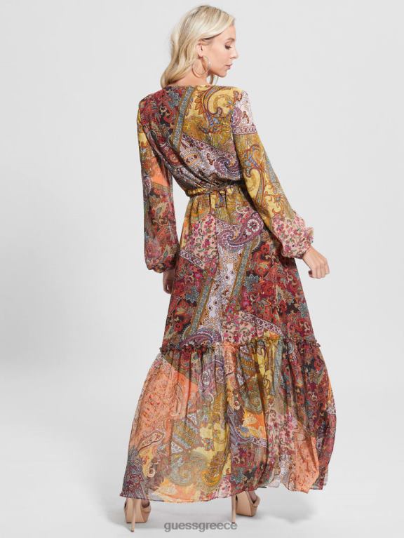 GUESS γυναίκες μάξι φόρεμα oriane Εκτύπωση πεδίων paisley ενδύματα J46DJ774