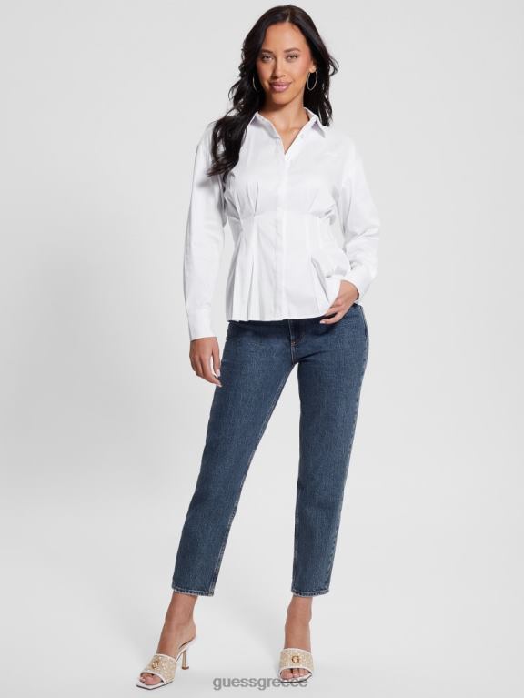 GUESS γυναίκες μακρυμάνικο πουκάμισο κορσέ agata καθαρό λευκό ενδύματα J46DJ1000