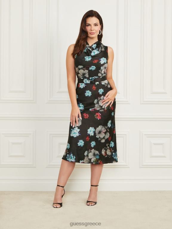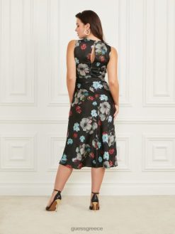 GUESS γυναίκες σατέν φόρεμα με στάμπα καταρράκτη άπιαστη εκτύπωση ενδύματα J46DJ405