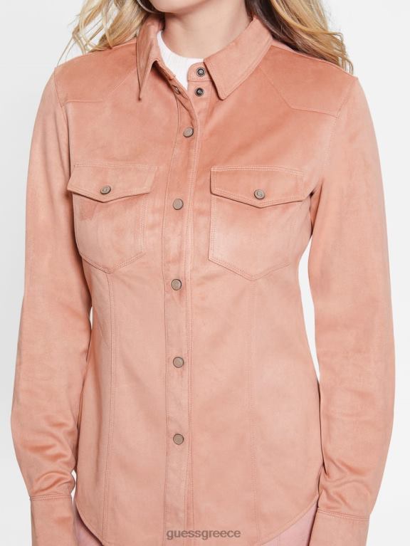 GUESS γυναίκες μαργαρίτα ψεύτικο σουέντ πουκάμισο γουέστερν σατέν τριαντάφυλλο ενδύματα J46DJ1425