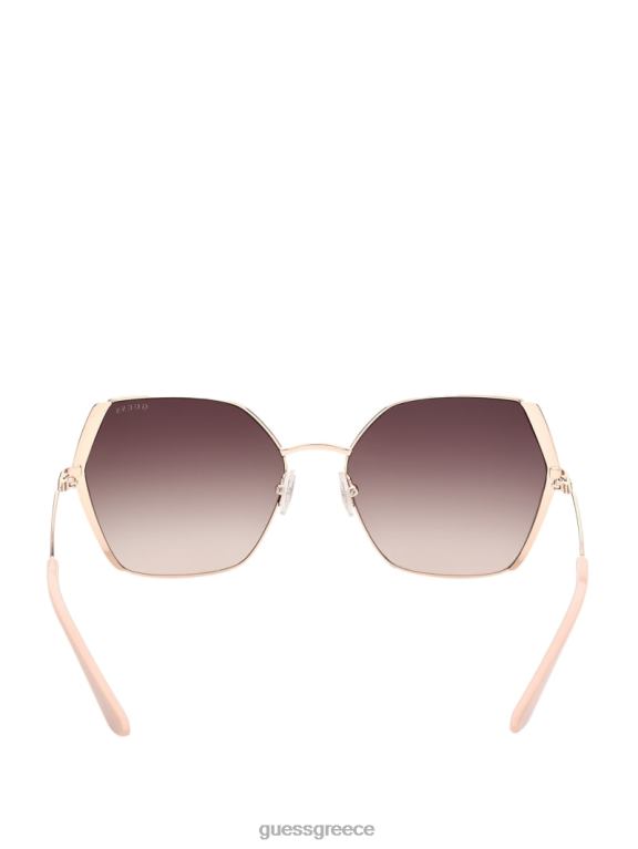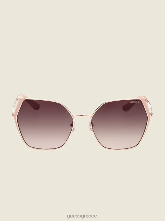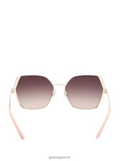 GUESS γυναίκες μεγάλου μεγέθους μεταλλικά γεωμετρικά γυαλιά ηλίου ροζόλντ αξεσουάρ J46DJ3733