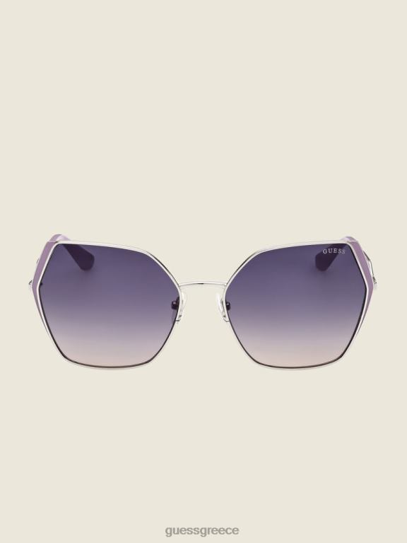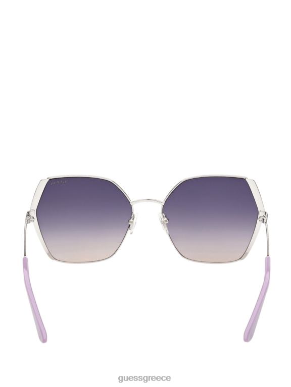 GUESS γυναίκες μεγάλου μεγέθους μεταλλικά γεωμετρικά γυαλιά ηλίου wht/ασημί αξεσουάρ J46DJ3691
