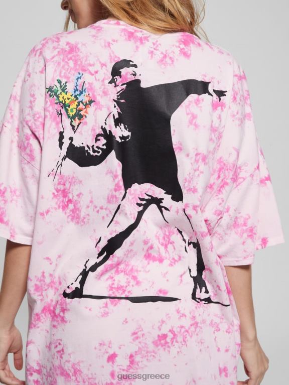 GUESS γυναίκες μεγάλο μπλουζάκι λουλουδιών εντυπωσιακό φούξια ροζ mul ενδύματα J46DJ1257