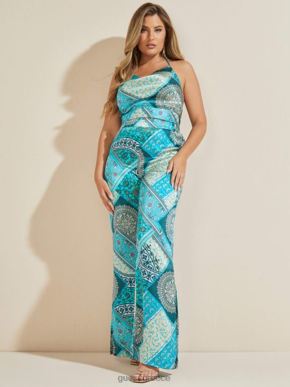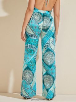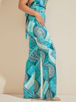 GUESS γυναίκες μεταξωτό παντελόνι mykonos mykanos blue combo ενδύματα J46DJ2191