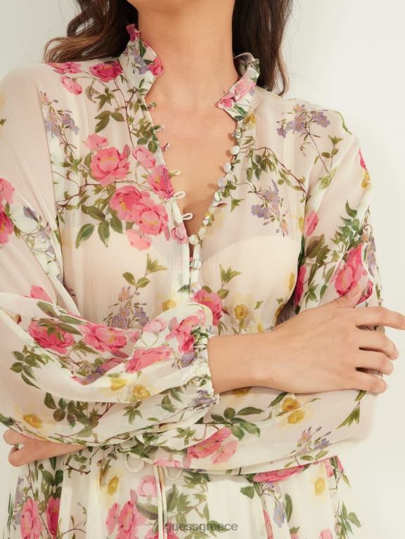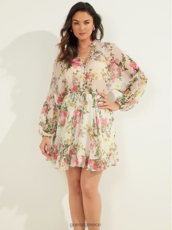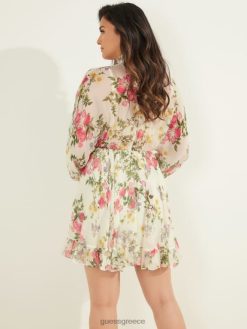 GUESS γυναίκες μεταξωτό φόρεμα σε πόζα με πέταλα πέταλο πόζα λευκό ενδύματα J46DJ721